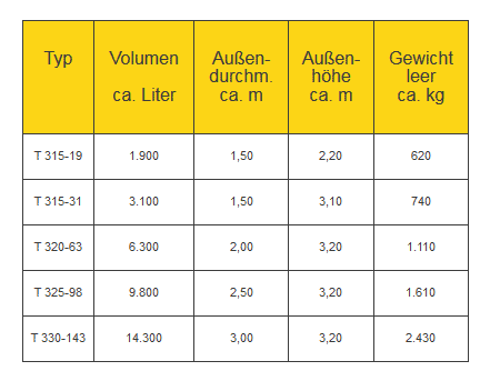 - Flexibel einsetzbar: denn mit den unterschiedlichen Größen von 1.900 Liter bis 14.300 Liter Volumen kann ein breites Anwendungsspektrum abgedeckt werden.