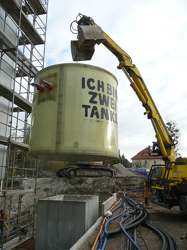 - Problemlos eingebaut: denn auf Kundenwunsch übernimmt Haase auch die komplette Einlagerung des Wärmespeichers. Innerhalb weniger Stunden erledigen wir das Ausheben der Grube, das Einsetzen des Behälters und das Abfahren der überschüssigen Erde.